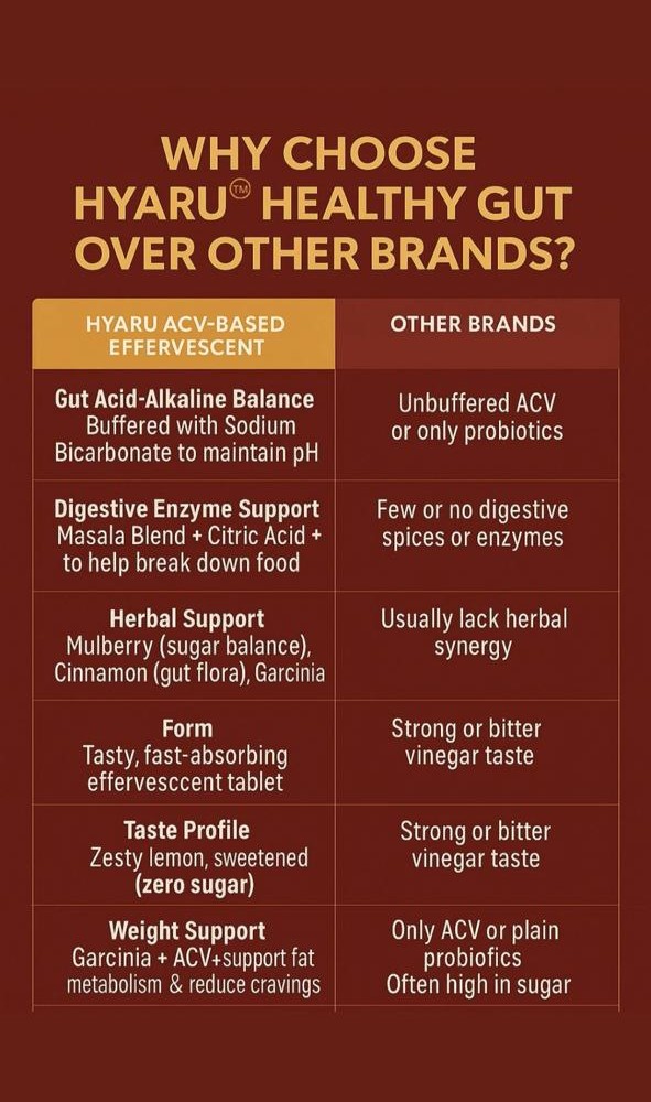 Support your digestive wellness with HYARU Healthy Gut Effervescent Tablets in a zesty Lemon Masala flavor. Each sugar-free tablet dissolves quickly in water to create a refreshing, tangy drink that aids digestion, balances gut flora, and relieves bloating and acidity. Formulated with natural ingredients, this wellness solution is ideal after meals or during times of digestive discomfort. With 20 tablets