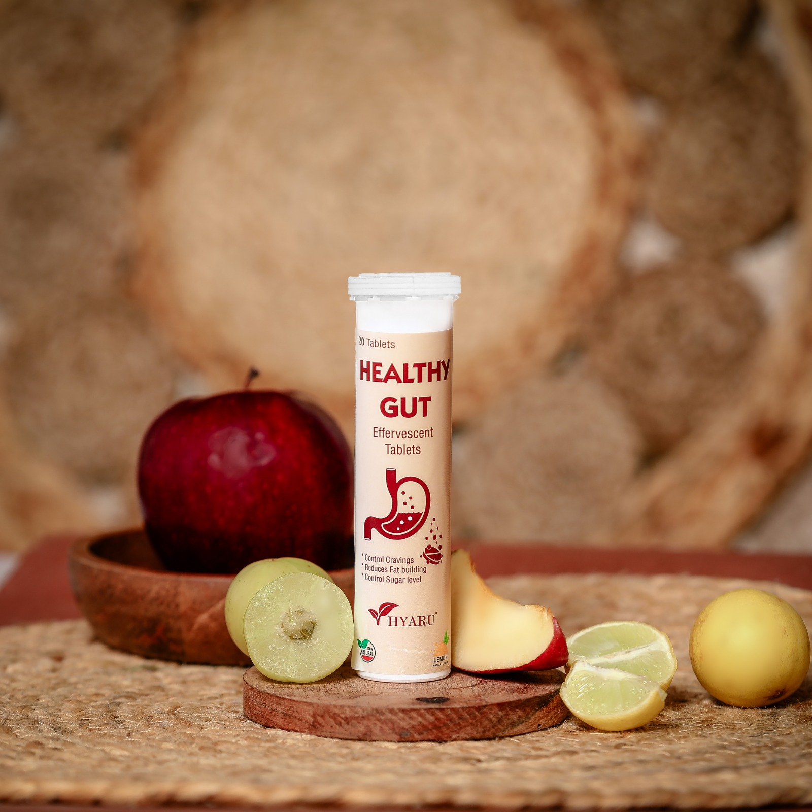 Support your digestive wellness with HYARU Healthy Gut Effervescent Tablets in a zesty Lemon Masala...